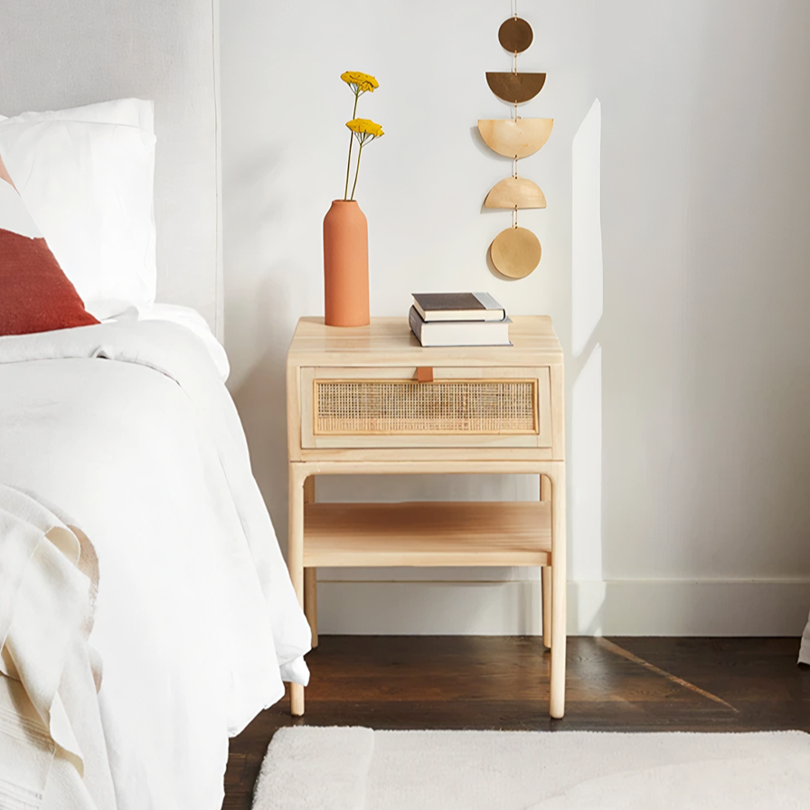 Cement Bedside Table, Light Oak