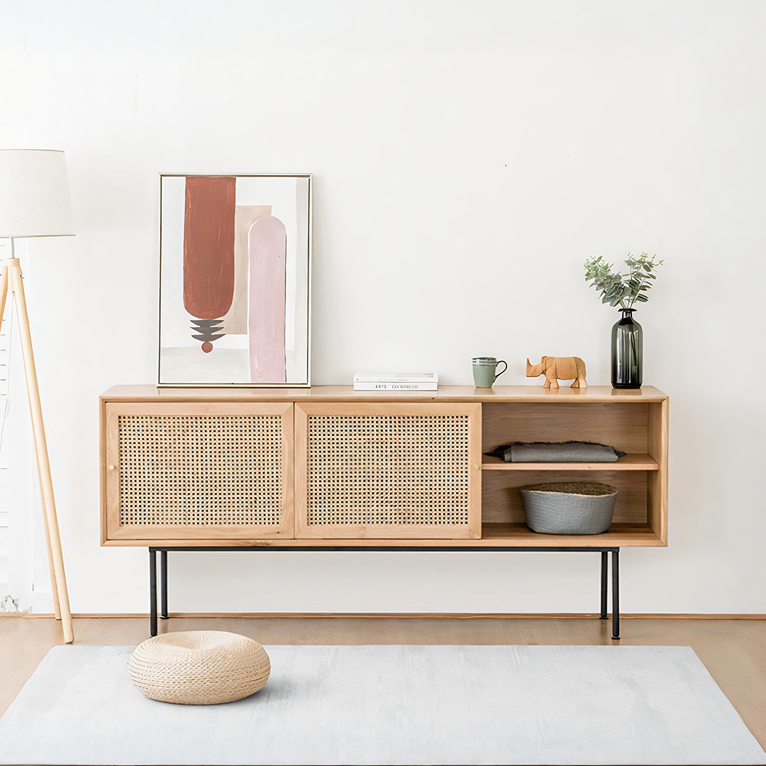 Cement Sideboard / TV Stand, Light Oak