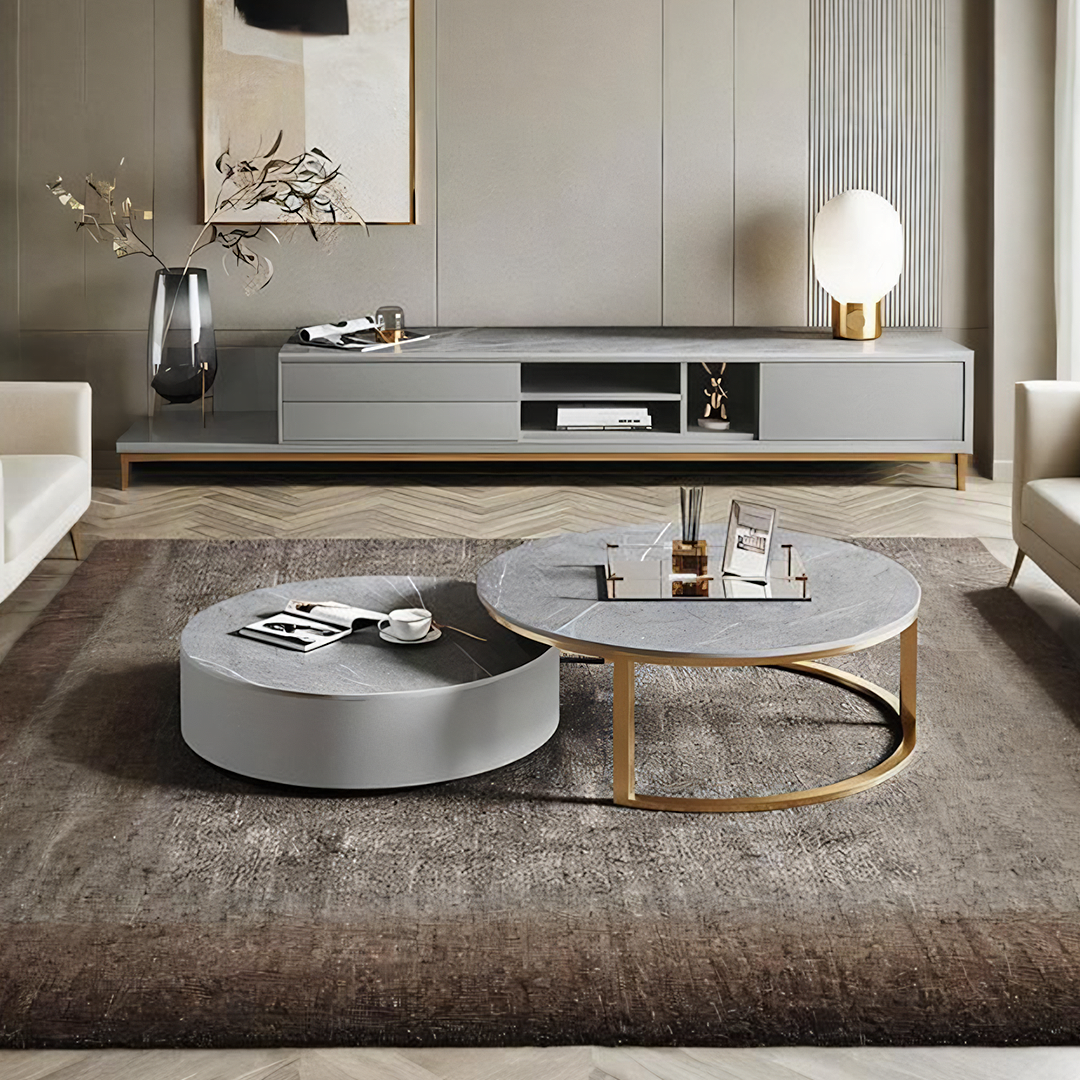 Product name | Daisy Round Nesting Coffee Table With TV Stand, Gold Leg |