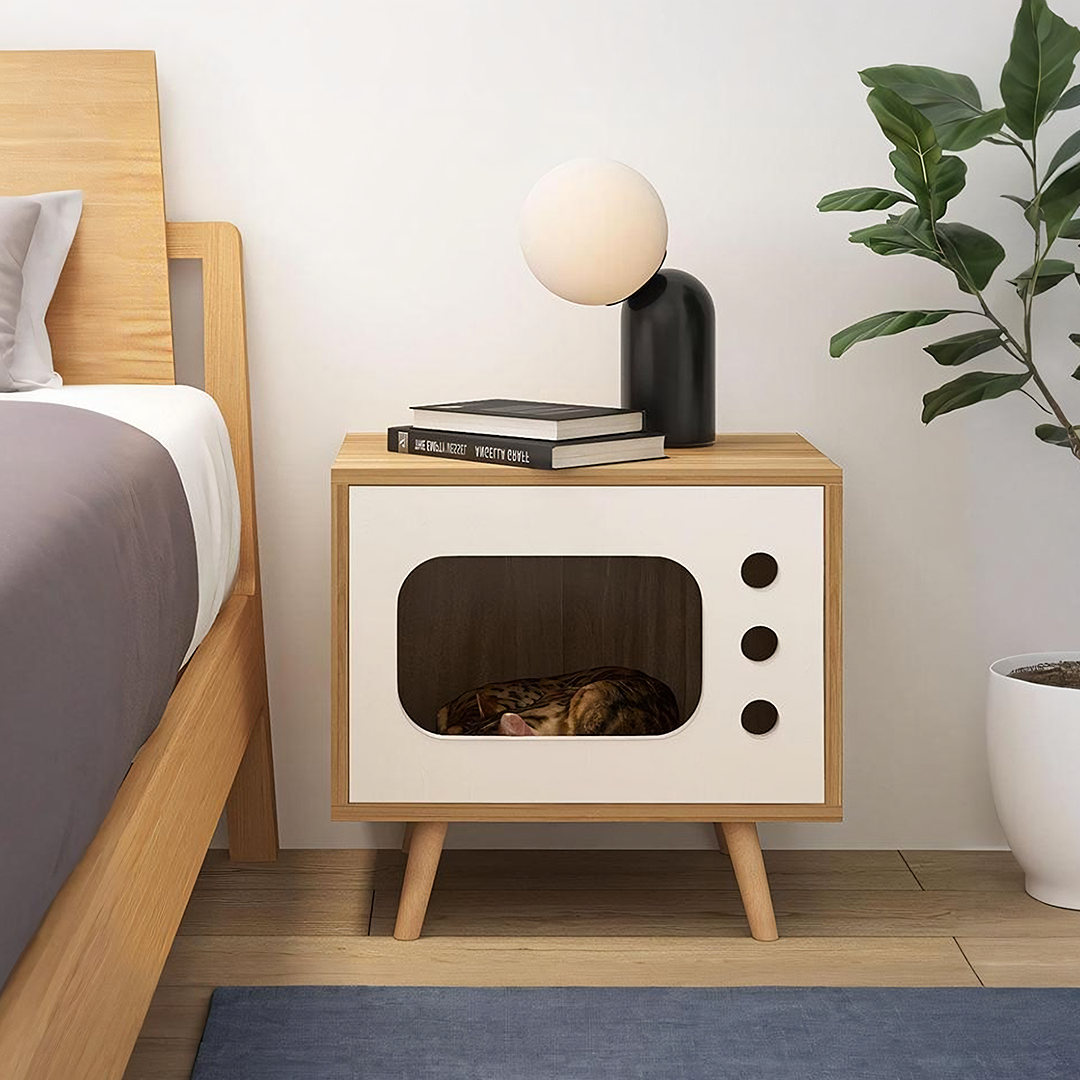 Durame Bedside Table With Pet House, Cat House