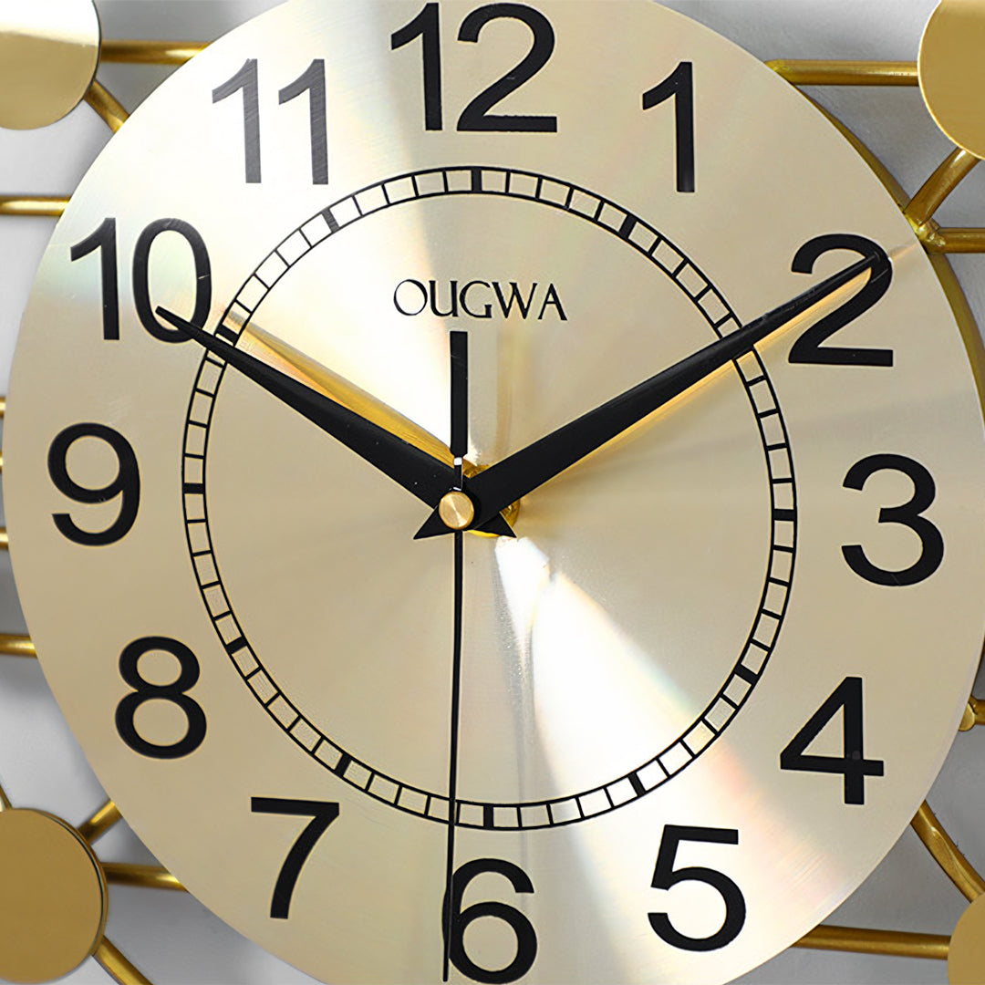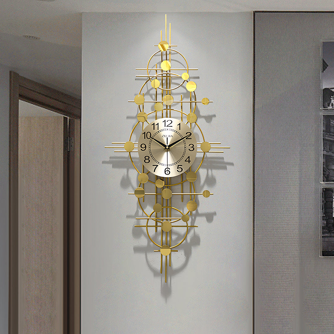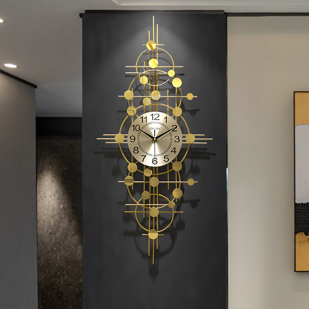 Cohen Art Deco Gold Wall Clock, Silent Clock, Horizontal Or Vertical
