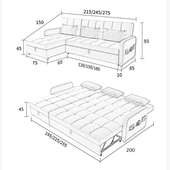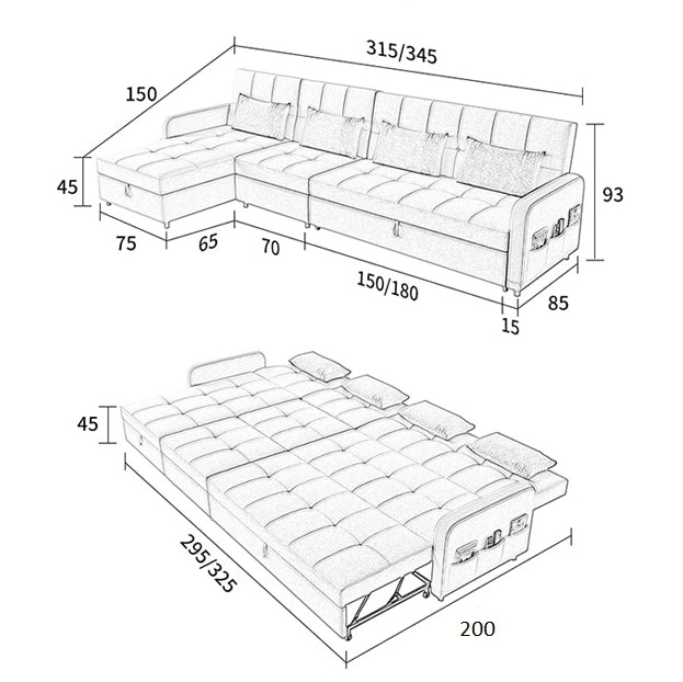 ML203 Three Seater Sofa Bed, L Shape Sofa Bed With Storage, Linen
