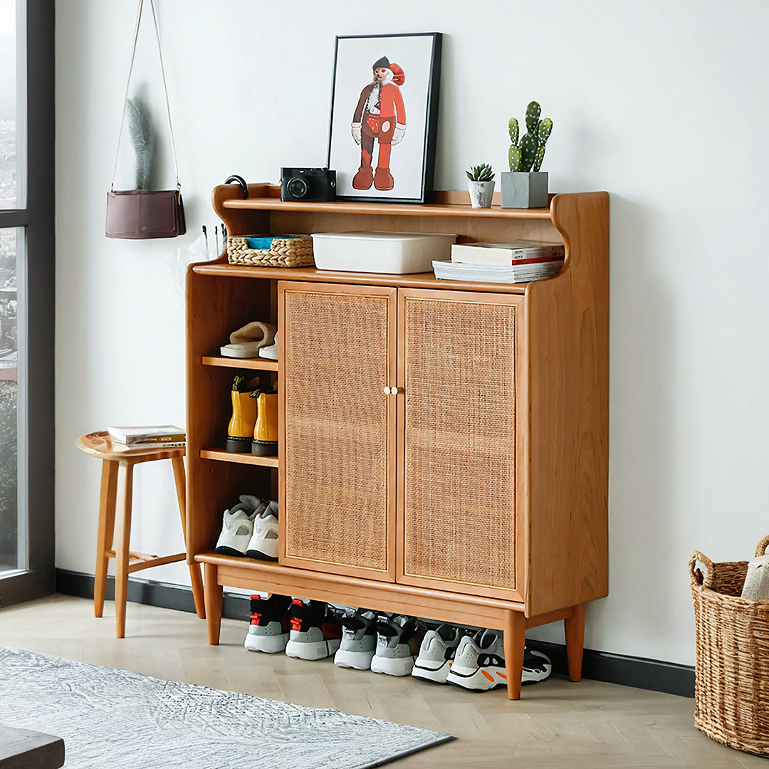 Pavia Shoe Storage, Rattan & Oak