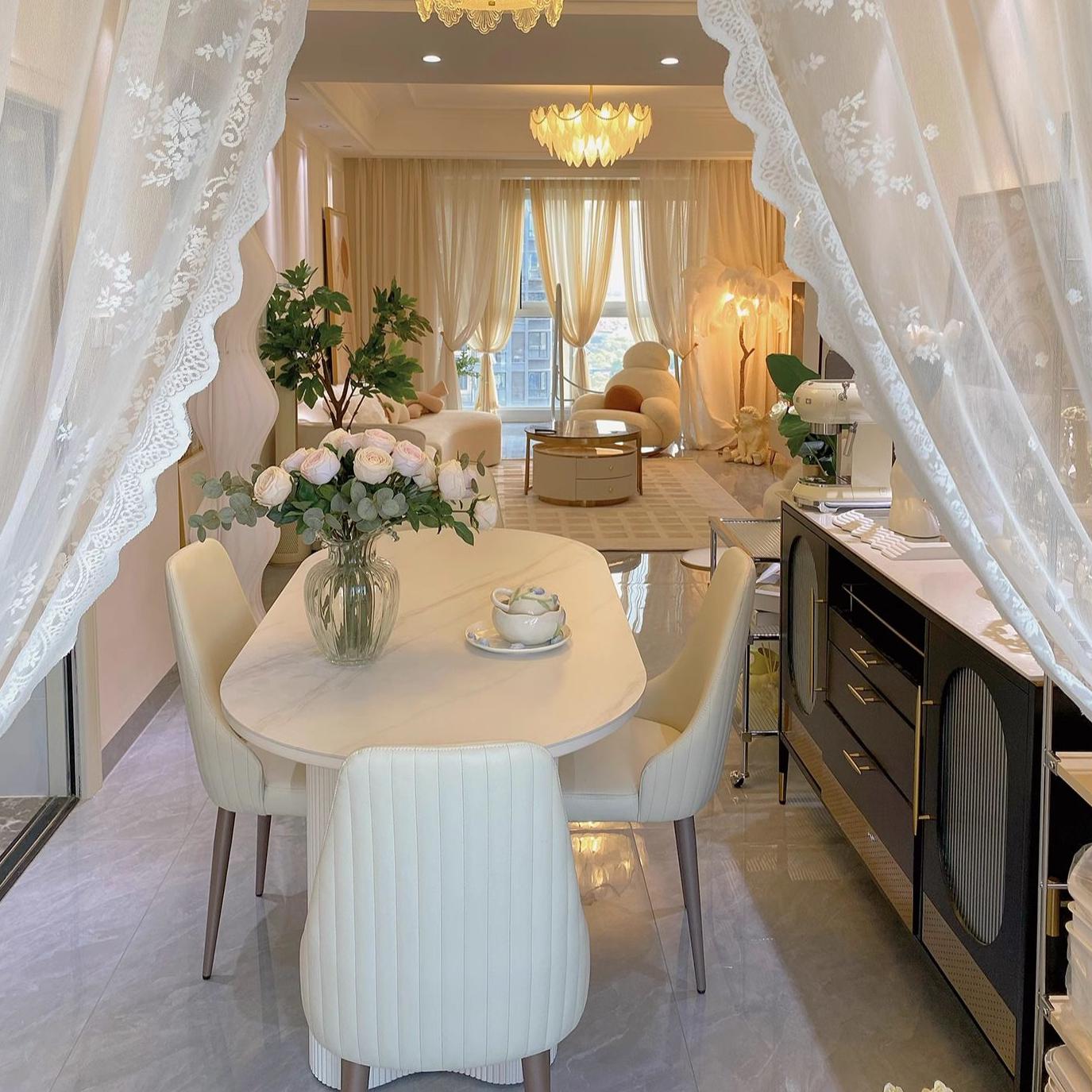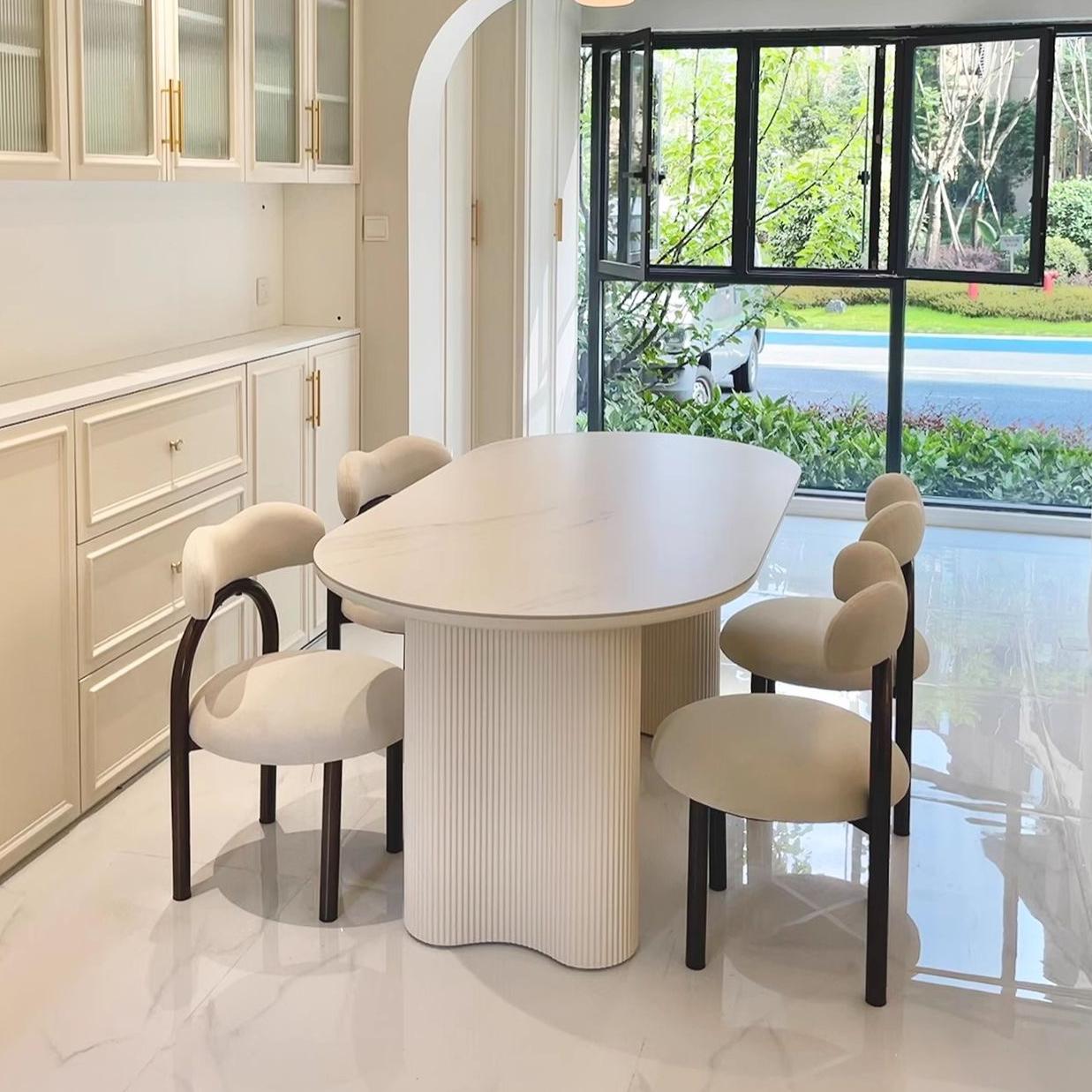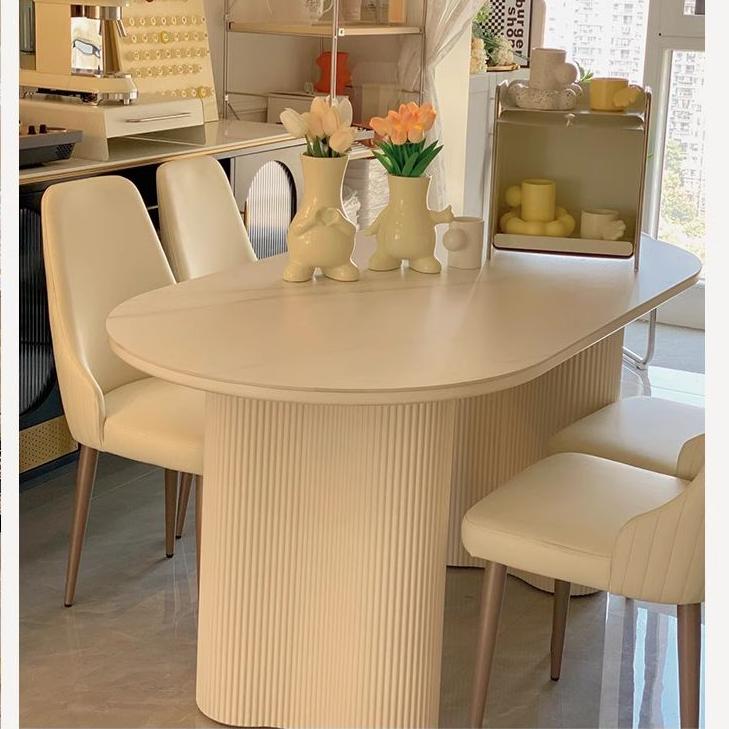 Table: Sintered Stone ( Gloss Table ), Wooden Base Chair: Leathaire, Sponge, Metal |
