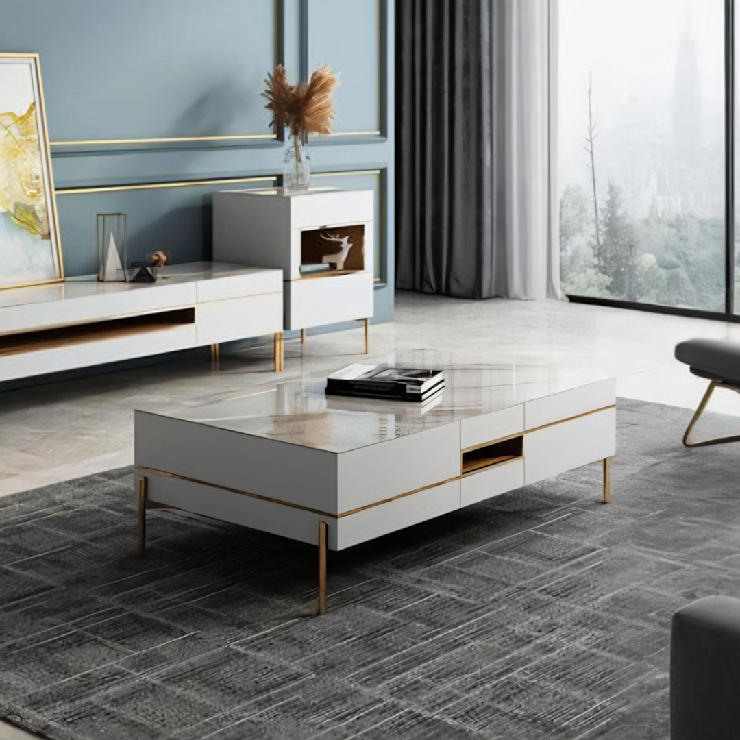 VIda Rectangle Coffee Table Set With TV Stand, Gold Leg