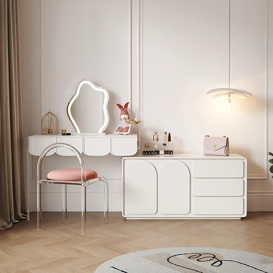 Zenith Dressing Table With Sideboard & LED Mirror, Cream
